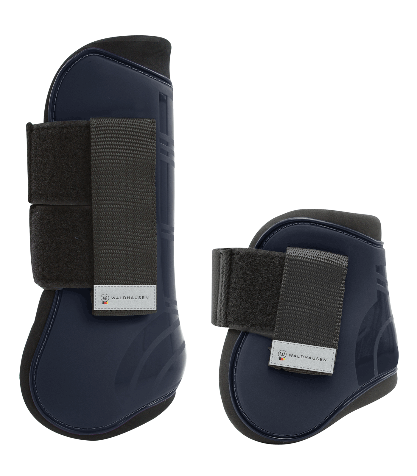 Casco resistente a los golpes con acolchado amortiguador de neopreno y suave zona confort para proteger las patas del caballo. Elástico de calidad con cierre de gancho y bucle y fijación superpuesta para un perfecto ajuste a la pata del caballo, también en condiciones difíciles. Set de un par.