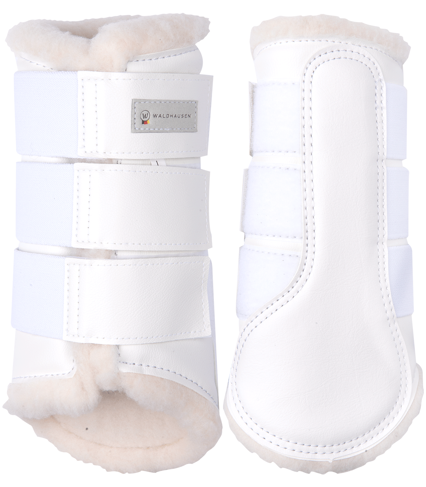 Protectores de fácil limpieza para las patas delanteras y traseras. Con acolchado suave de cuero sintético. Excelente absorción y amortiguación de golpes para una excelente protección de las patas del caballo. En tamaño M con dos cierres de gancho y bucle, en tamaño L y XL con tres cierres de gancho y bucle, resp. Set de un par. Sobre colgador de cartón Waldhausen