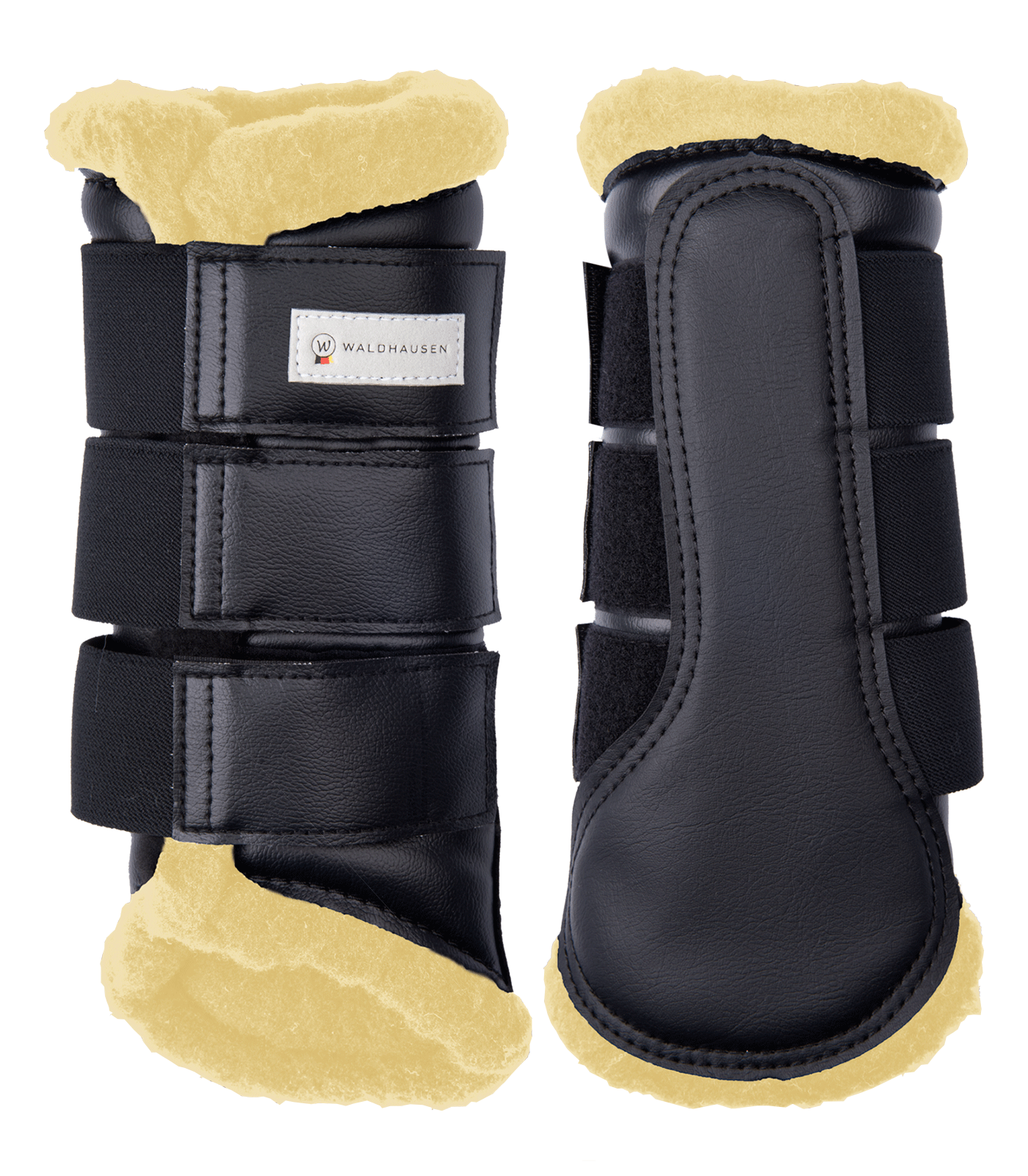 Protectores de fácil limpieza para las patas delanteras y traseras. Con acolchado suave de cuero sintético. Excelente absorción y amortiguación de golpes para una excelente protección de las patas del caballo. En tamaño M con dos cierres de gancho y bucle, en tamaño L y XL con tres cierres de gancho y bucle, resp. Set de un par. Sobre colgador de cartón Waldhausen