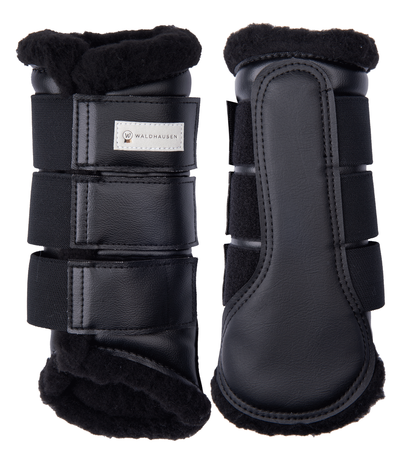 Protectores de fácil limpieza para las patas delanteras y traseras. Con acolchado suave de cuero sintético. Excelente absorción y amortiguación de golpes para una excelente protección de las patas del caballo. En tamaño M con dos cierres de gancho y bucle, en tamaño L y XL con tres cierres de gancho y bucle, resp. Set de un par. Sobre colgador de cartón Waldhausen