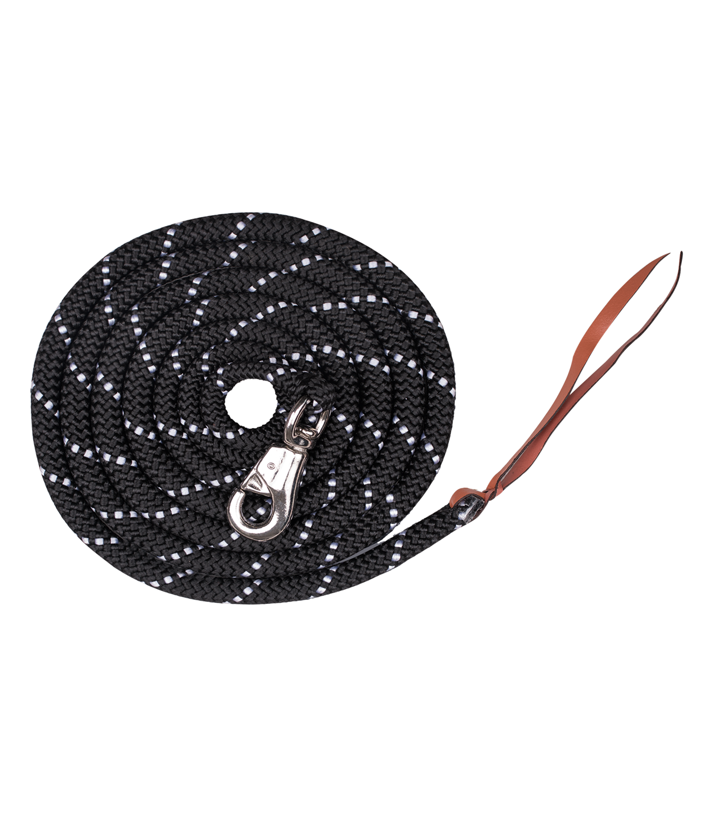 Ramal de nailon reforzado con doble ojal de cuero y bello mosquetón de carabina. Longitud: 3 m aprox.