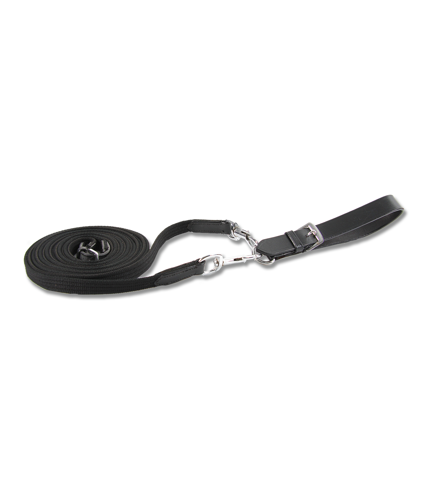 Prácticas e indispensables: riendas alemanas con dos mosquetones de carabina y una trabilla aparte para la cincha. Longitud: 2,50 m por cada lado
