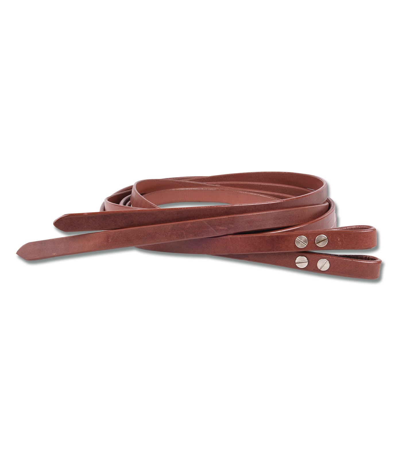 De cuero untado de excelente calidad. Abiertas, con trabillas móviles y sistema doble de tornillos de seguridad Chicago Longitud: 210 cm Ancho: 1,5 cm A juego con todas las bridas Western