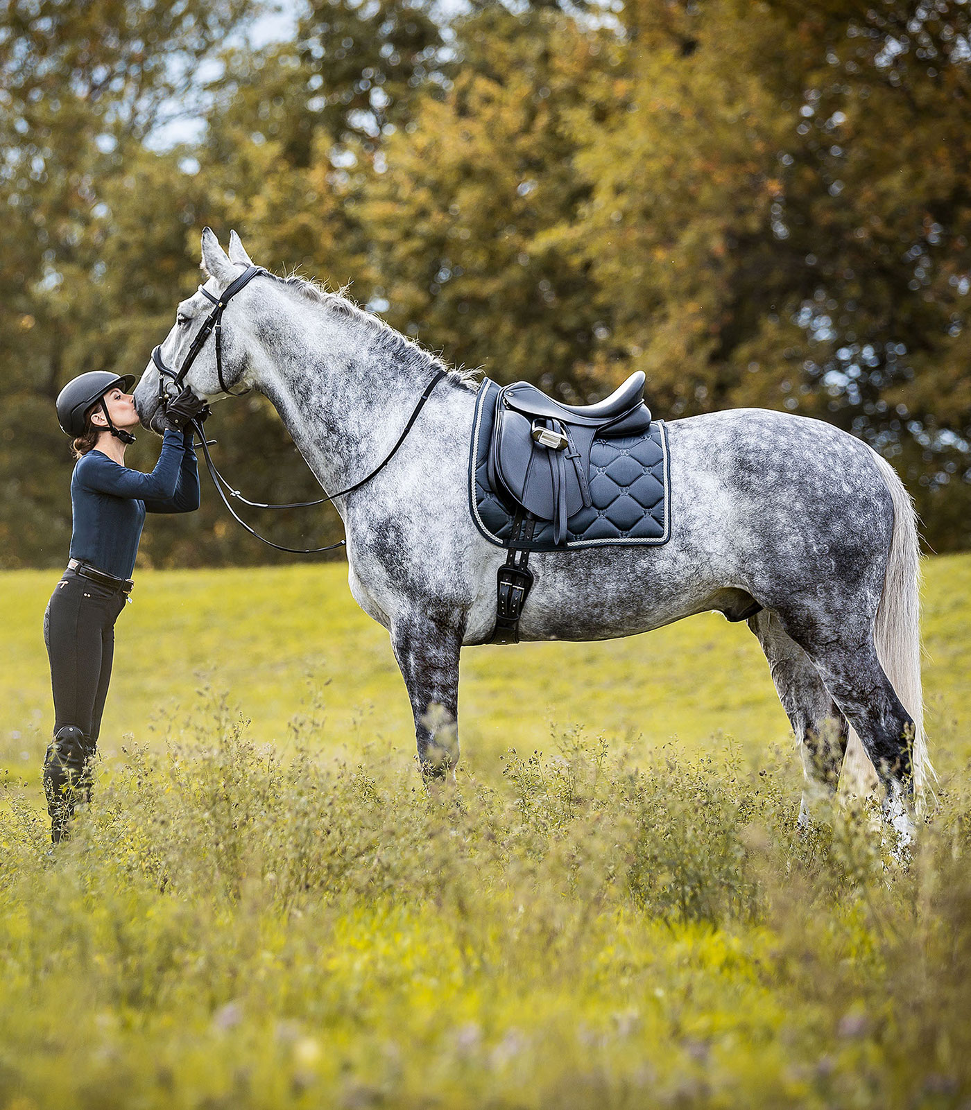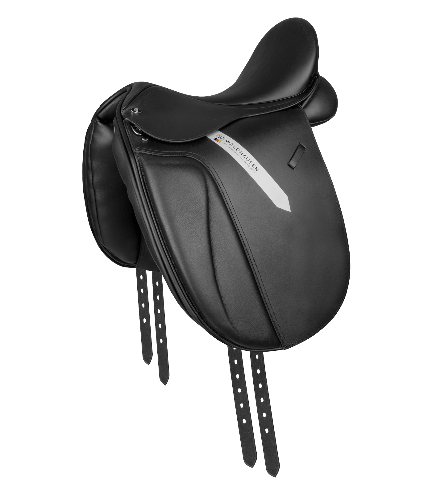 La silla de montar de doma clásica Waldhausen de flor de piel – una alternativa de gran valor. Con una superficie de asiento extra y piel antideslizante, esta silla ofrece seguridad y confort. Con arzón de plástico, arcos de puente intercambiables y apoyos para las rodillas regulables y cinchado en Y. Una silla de montar de excelente calidad para el jinete exigente. Suministro con 2 pares de apoyos para las rodillas y envoltura protectora polar/600D de poliéster. Entrega en fábrica con arco de puente verde. Las sillas de montar Premium de Waldhausen – una alternativa de primera categoría. Con arcos de puente intercambiables y una superficie de asiento extra confortable. Con apoyos para las rodillas intercambiables y regulables para una posición óptima de las piernas y piel antideslizante, de excelente calidad para un buen ajuste, estas sillas de montar son ideales para el jinete exigente.