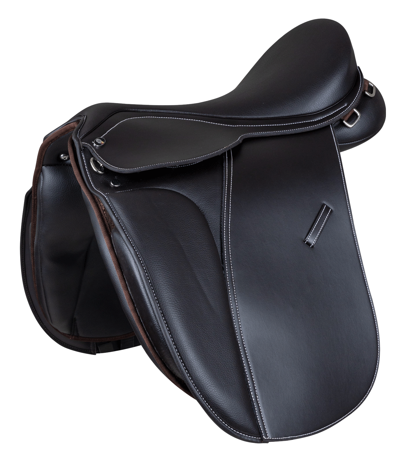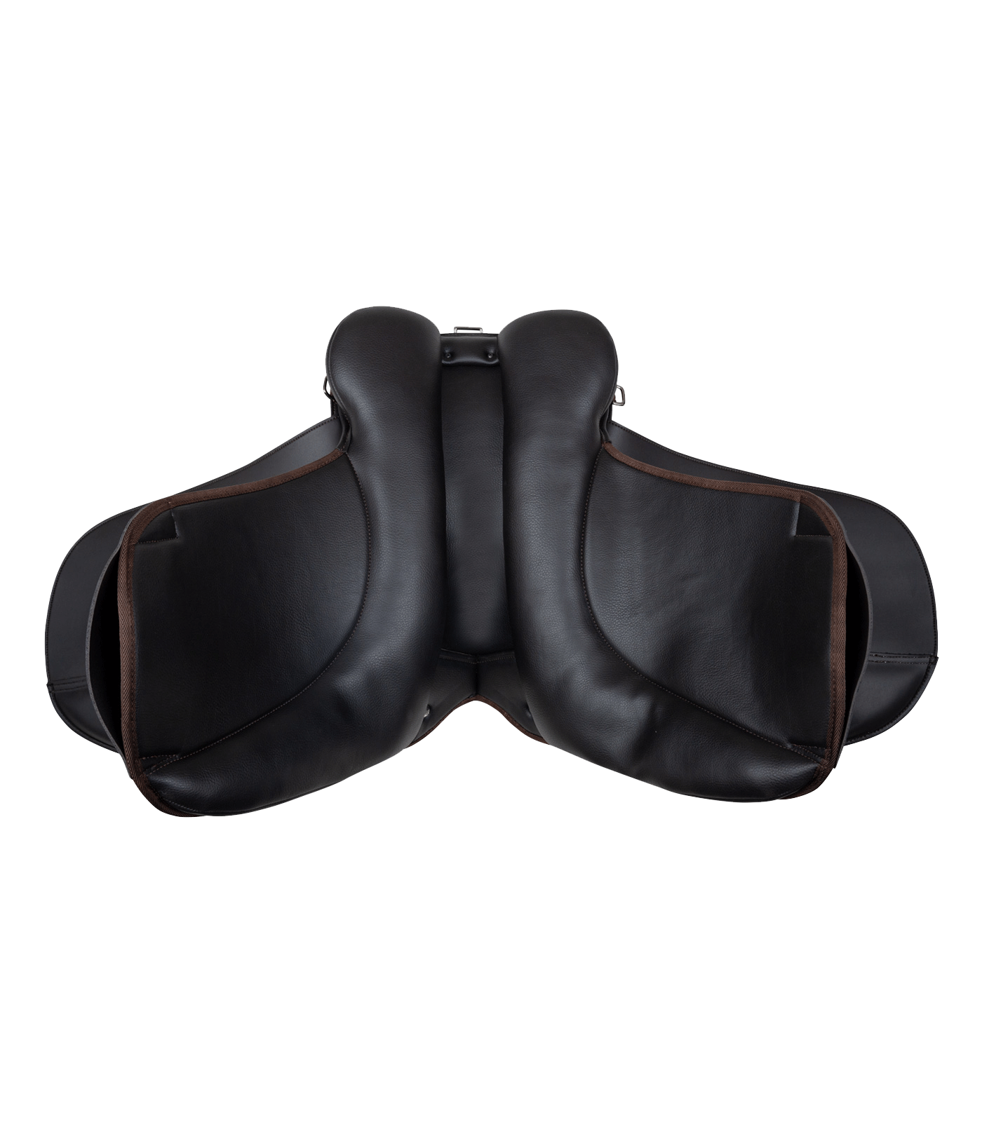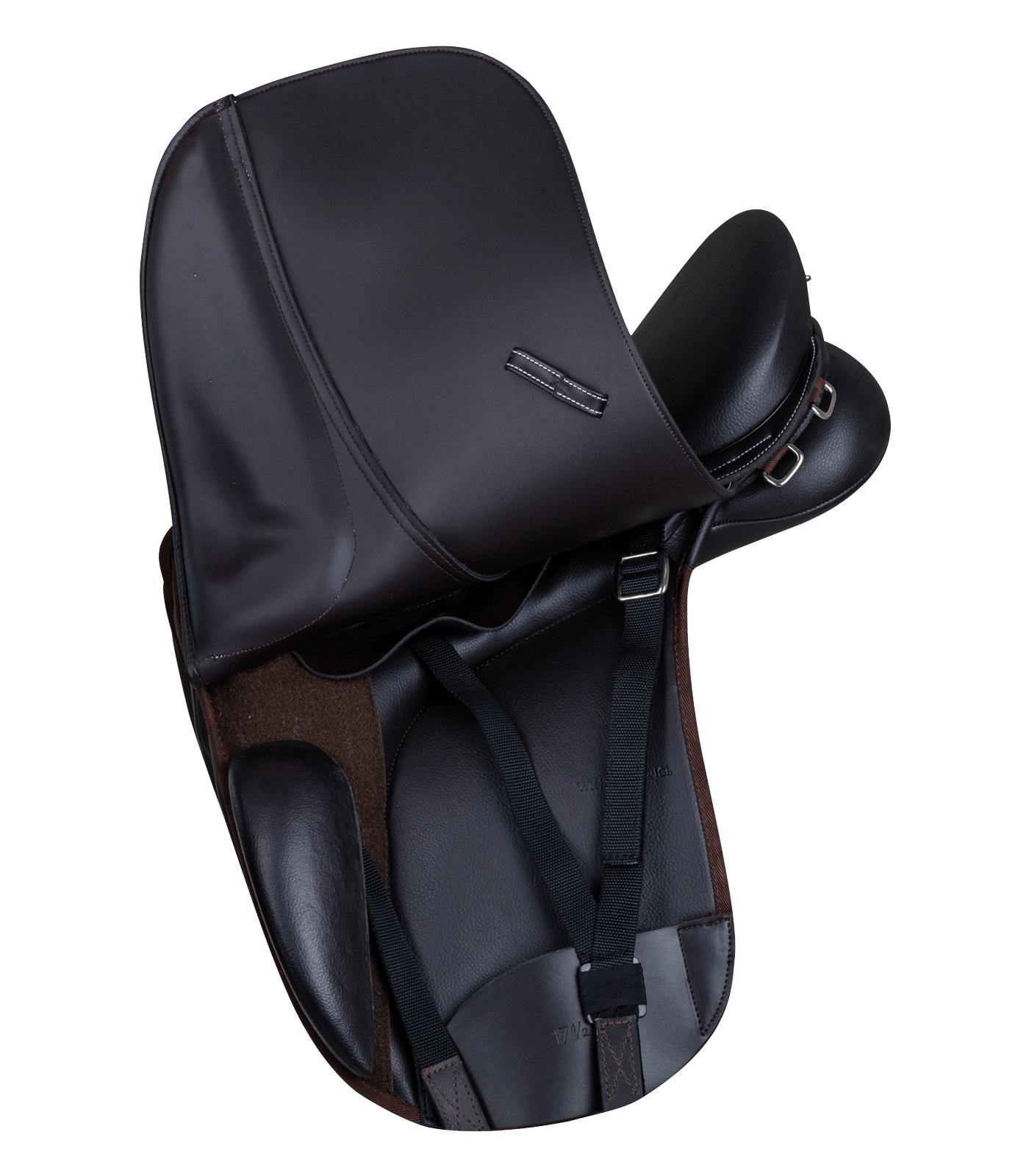 La silla de montar Island de Waldhausen hecha de material sintético de fácil cuidado, con arcos de puente intercambiables, soporte para la grupera y rodilleras intercambiables y regulables, así como excelente relación calidad/precio. Entrega en fábrica con arco de puente verde.
