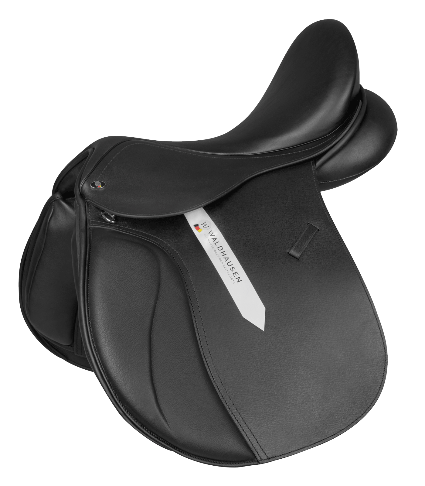 La silla de montar para concurso completo Waldhausen de flor de piel – una alternativa de gran valor. Con una superficie de asiento extra y piel antideslizante, esta silla ofrece seguridad y confort. Con arzón de plástico, arcos de puente intercambiables y apoyos para las rodillas regulables. Una silla de montar de excelente calidad para el jinete exigente. Suministro con 2 pares de apoyos para las rodillas y envoltura protectora polar/600D de poliéster. Entrega en fábrica con arco de puente verde. Las sillas de montar Premium de Waldhausen – una alternativa de primera categoría. Con arcos de puente intercambiables y una superficie de asiento extra confortable. Con apoyos para las rodillas intercambiables y regulables para una posición óptima de las piernas y piel antideslizante, de excelente calidad para un buen ajuste, estas sillas de montar son ideales para el jinete exigente.