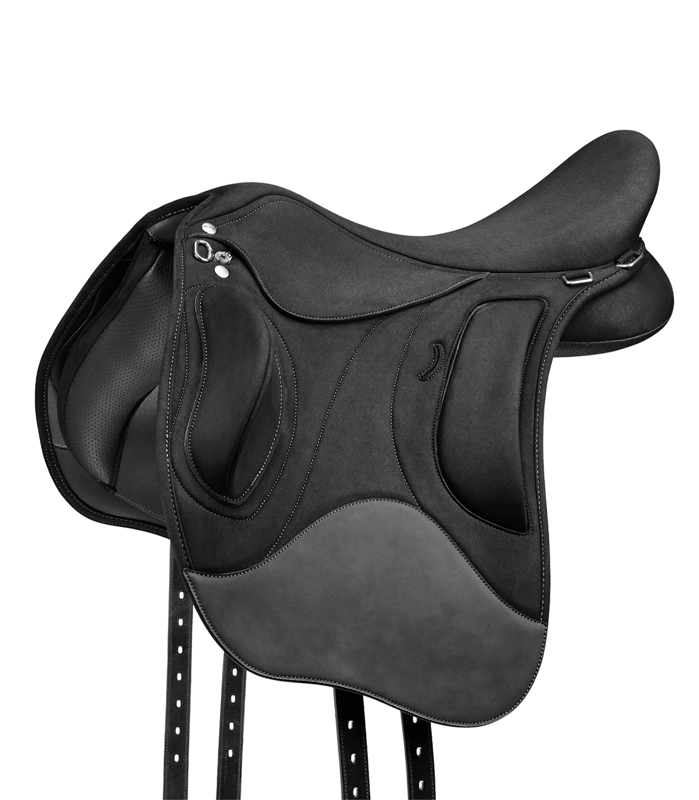Wintec Pro Wide Endurance ofrece un soporte excepcional para caballos anchos. Su asiento muy suave y su innovador ajuste estrecho proporcionan un confort inmediato y una alineación sin esfuerzo, contrarrestando la sensación de anchura de las sillas para caballos anchos. Gracias a la combinación de soportes delanteros móviles y traseros fijos, puede ajustar la silla y evitar la fatiga. El avanzado sistema de cinchado en forma de Y garantiza una mayor estabilidad en caballos más redondos y anchos. Sus paneles blandos se adaptan a la complexión individual y ancha del caballo y ofrecen comodidad y protección en recorridos exigentes o rutas largas.