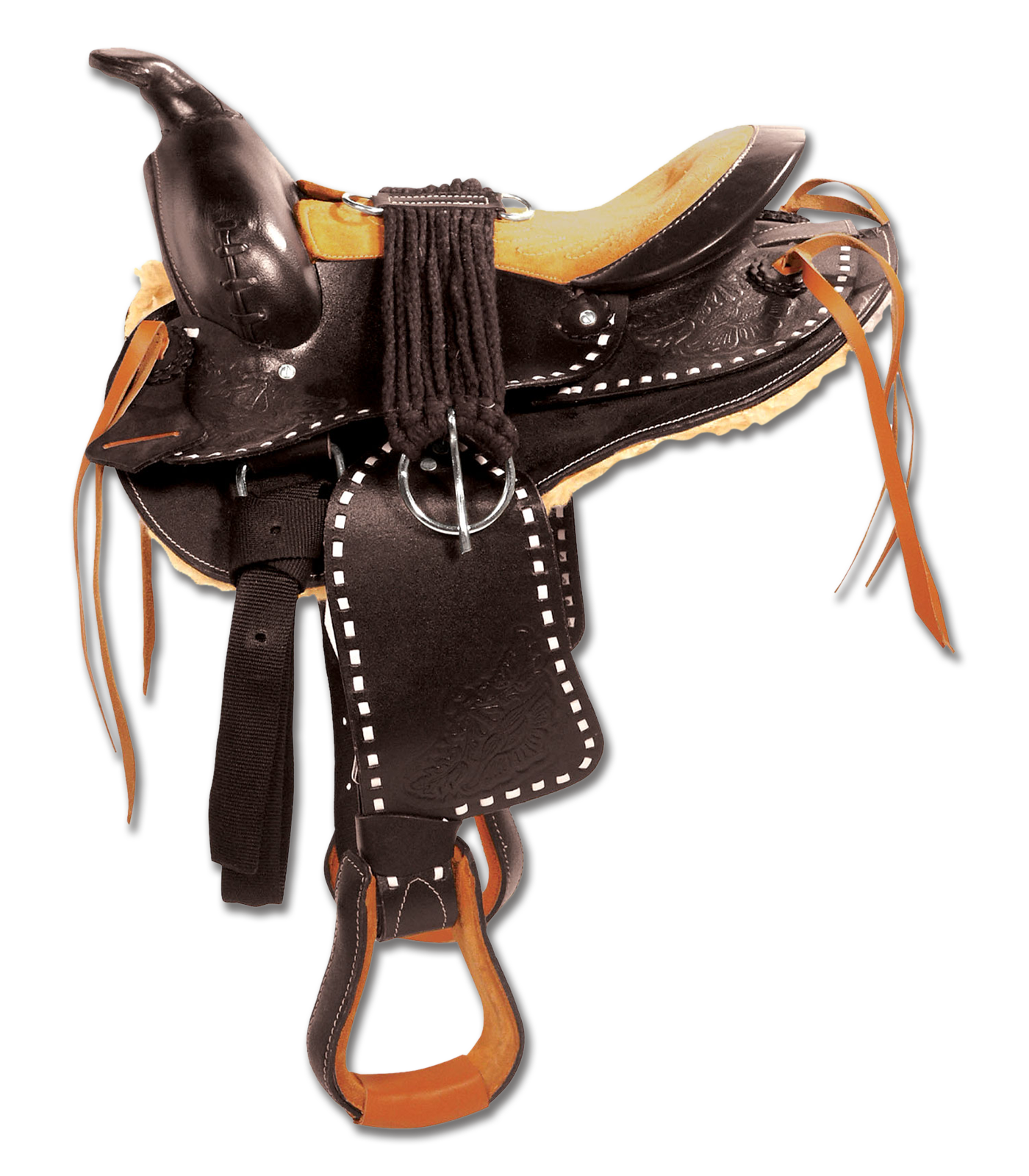 De cuero de excelente calidad con asiento de gamuza para una buena adherencia. Para caballos con dorso ancho normal. Equipada con cincha. Tamaño: 13″/30 cm Color: marrón oscuro Superficie de apoyo 53 cm aprox.