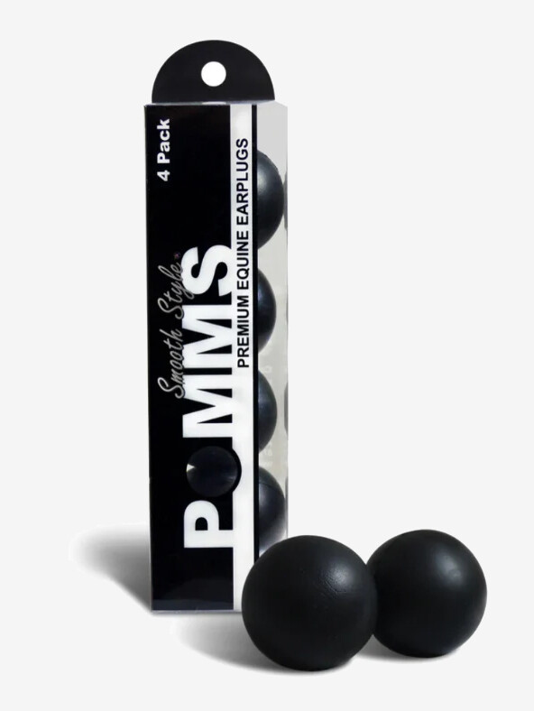 Las pomms son los tapones para los oídos que venden en los Estados Unidos. Son una nueva innovación de diseño para mejorar el enfoque y alentar la relajación al permitir que los caballos escuchen tonos normales, al tiempo que reducen en gran medida los ruidos distractores o fuertes. Los pomms suaves crean un efecto reconfortante en el oído interno de los caballos que induce una sensación relajante. Hecho de material suave y cómodo no irritante que proteja a sus caballos las orejas sensibles del viento, el agua y los escombros. Son discretos, duraderos y no se caen. Fácil de rodar en el canal auditivo para un ajuste cómodamente ajustado. Vendido en un paquete que contiene dos pares.