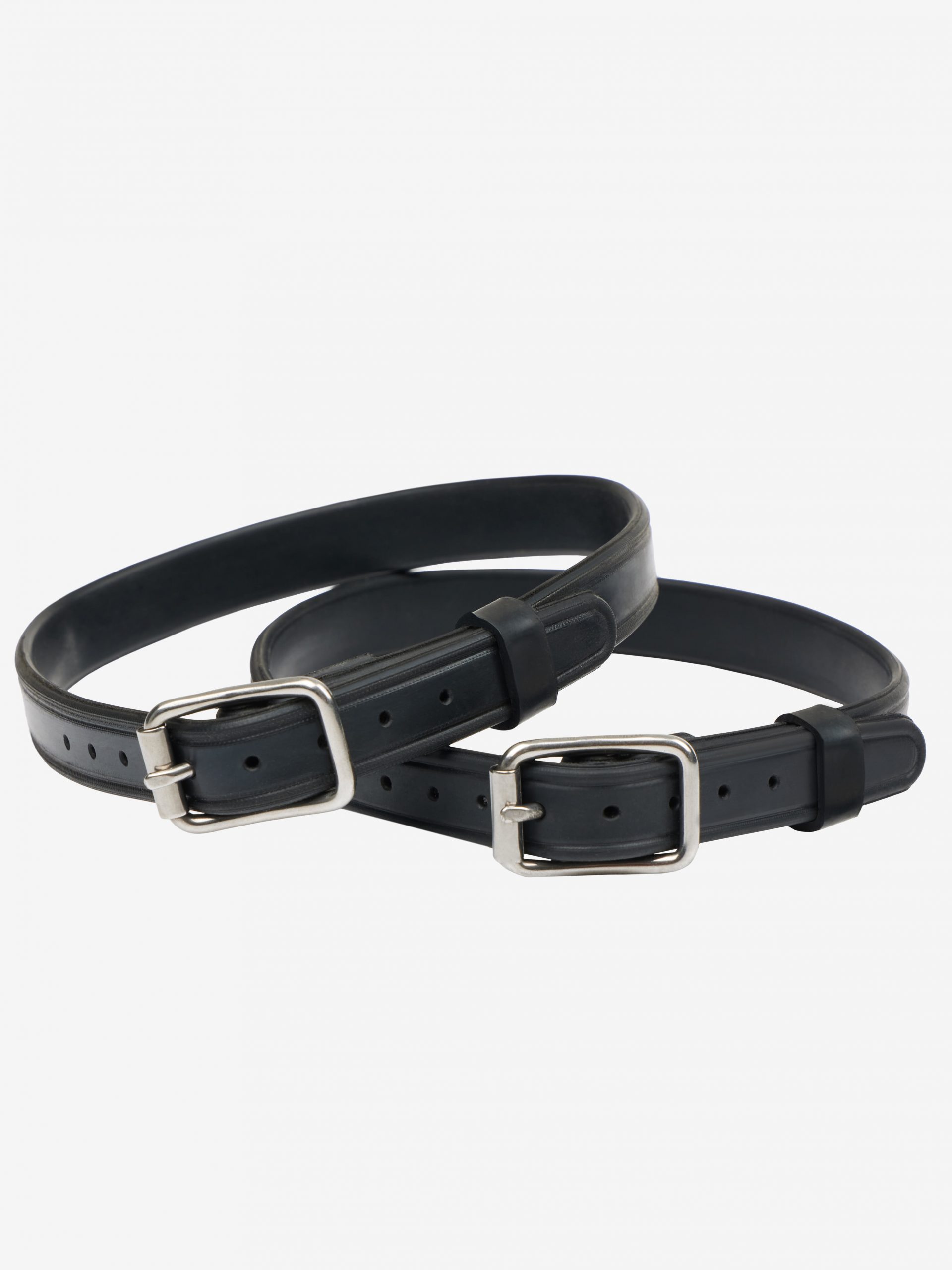 Proteja las botas de montar a los caballos y optimice el contacto entre usted y su caballo con nuestras sofisticadas correas de goma limpia de toallita. Diseñados para adaptarse a todo tipo de estímulo, estas correas de estímulo evitan que sus espuelas se escapen fuera de lugar y causen incomodidad de su caballo. También protegen los tacones de las botas de montar a caballo de rasguños y rasguños causados por sus espuelas. Las correas están hechas de goma suave y limpia con una hebilla de acero inoxidable, agregando un aspecto elegante y sofisticado a sus botas de montar.