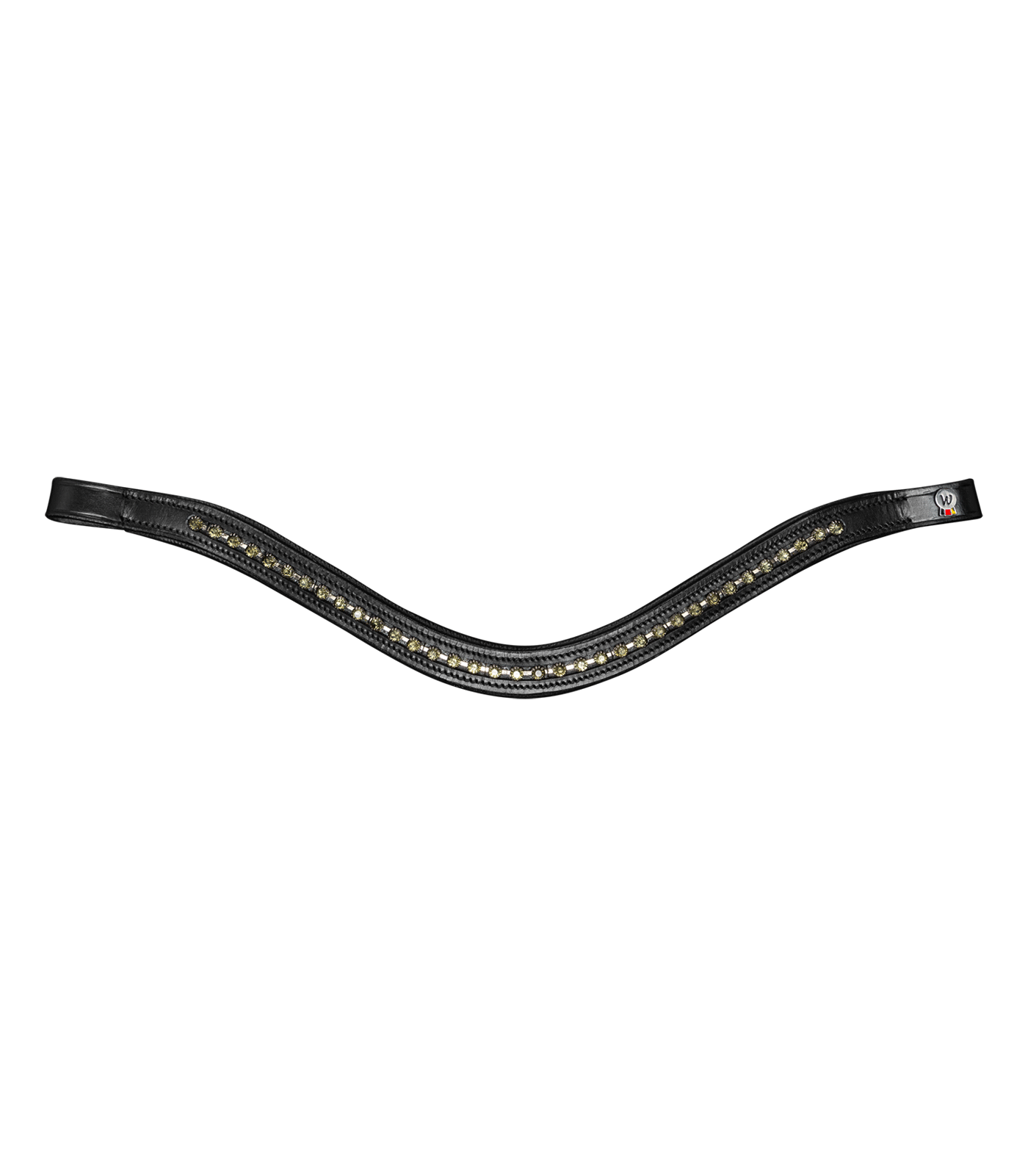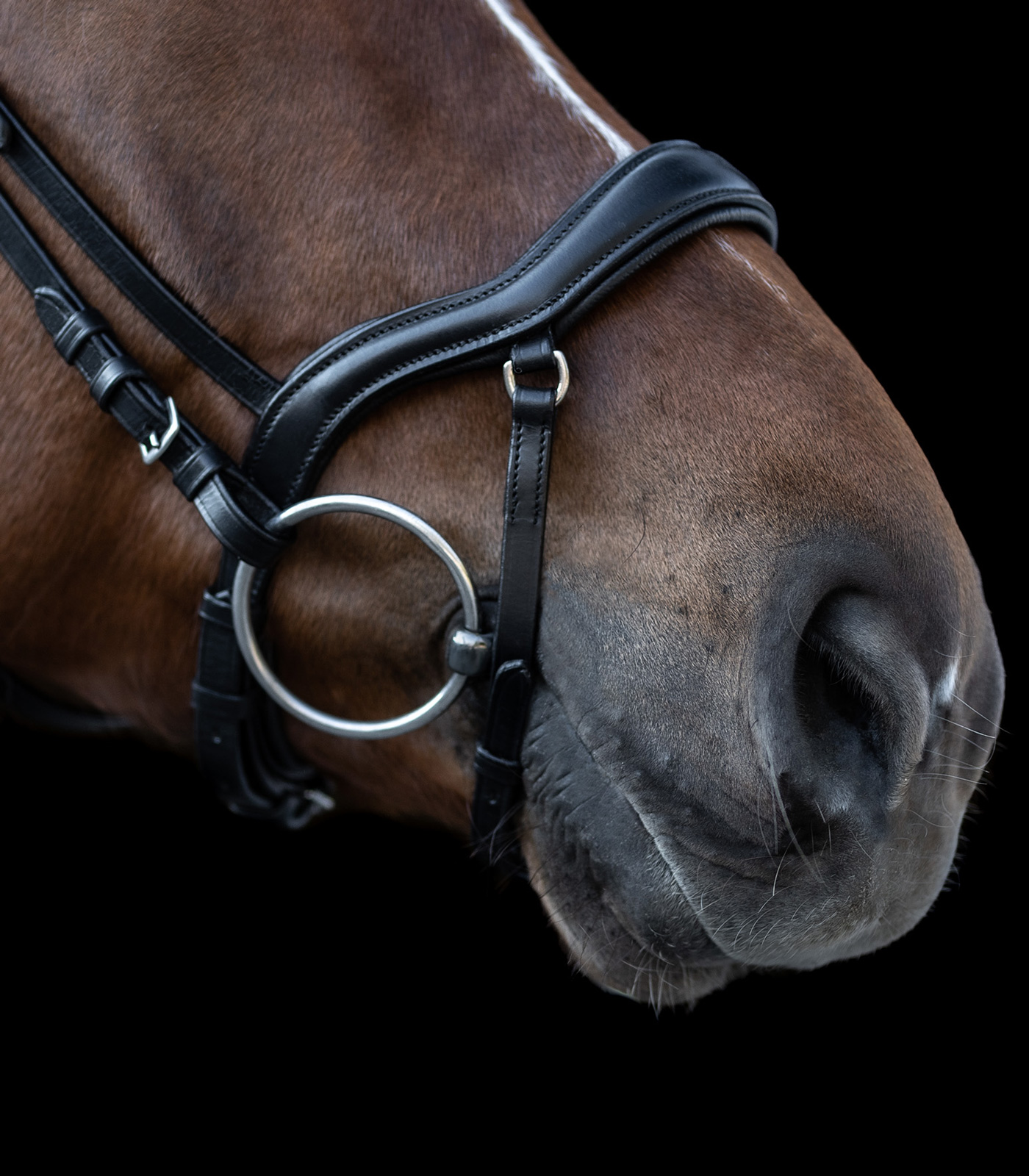 – Combinación de cabezada inglesa y hannoveriana. – Testera con más espacio para las orejas y acolchado suave. – Frontalera redondeada con fina cadena de strass en el centro. – Muserola y testera con acolchado suave. – Fijación lateral del cierrabocas mediante dos anillas. – Impide la acumulación de presión sobre el hueso nasal, permite además un enganche más flexible, así como más libertad en la zona de los ollares. – Hebillas de acero inoxidable. – Riendas de tela de 19 mm. Colección X-Line de Waldhausen: elegante y de calidad. Más de 185 años de experiencia trabajando el cuero garantizan una calidad excelente y un ajuste perfecto. Nuestros productos de la serie X-Line están realizados con el mejor cuero tratado en curtiembres de renombre. Bridas Waldhausen, ¡para jinetes que aprecian la calidad!