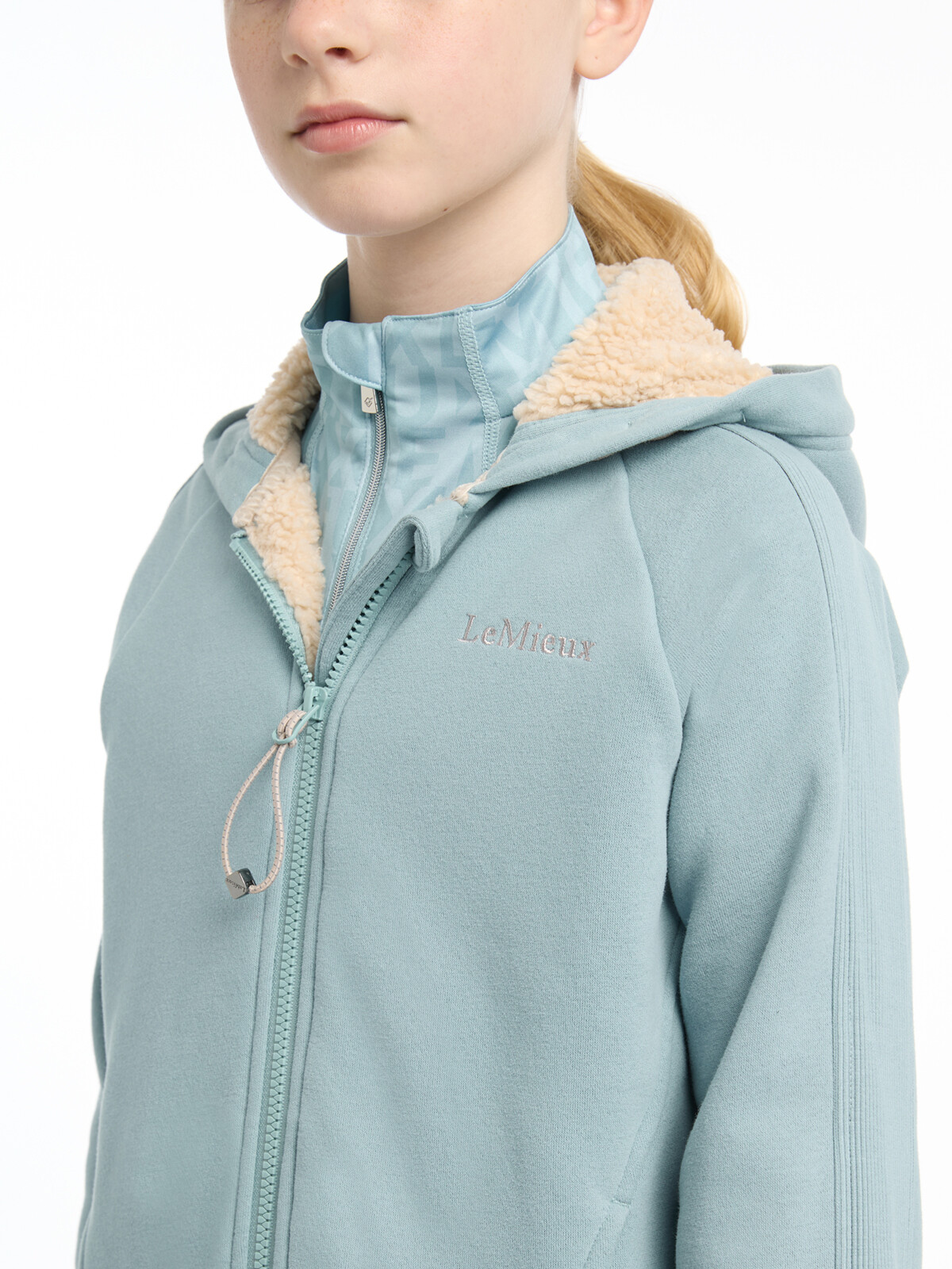 The LeMieux logo embroidery, side pockets and a zip puller that doubles as a hair tie add extra details young riders will love. A fleece-lined hood completes the look.