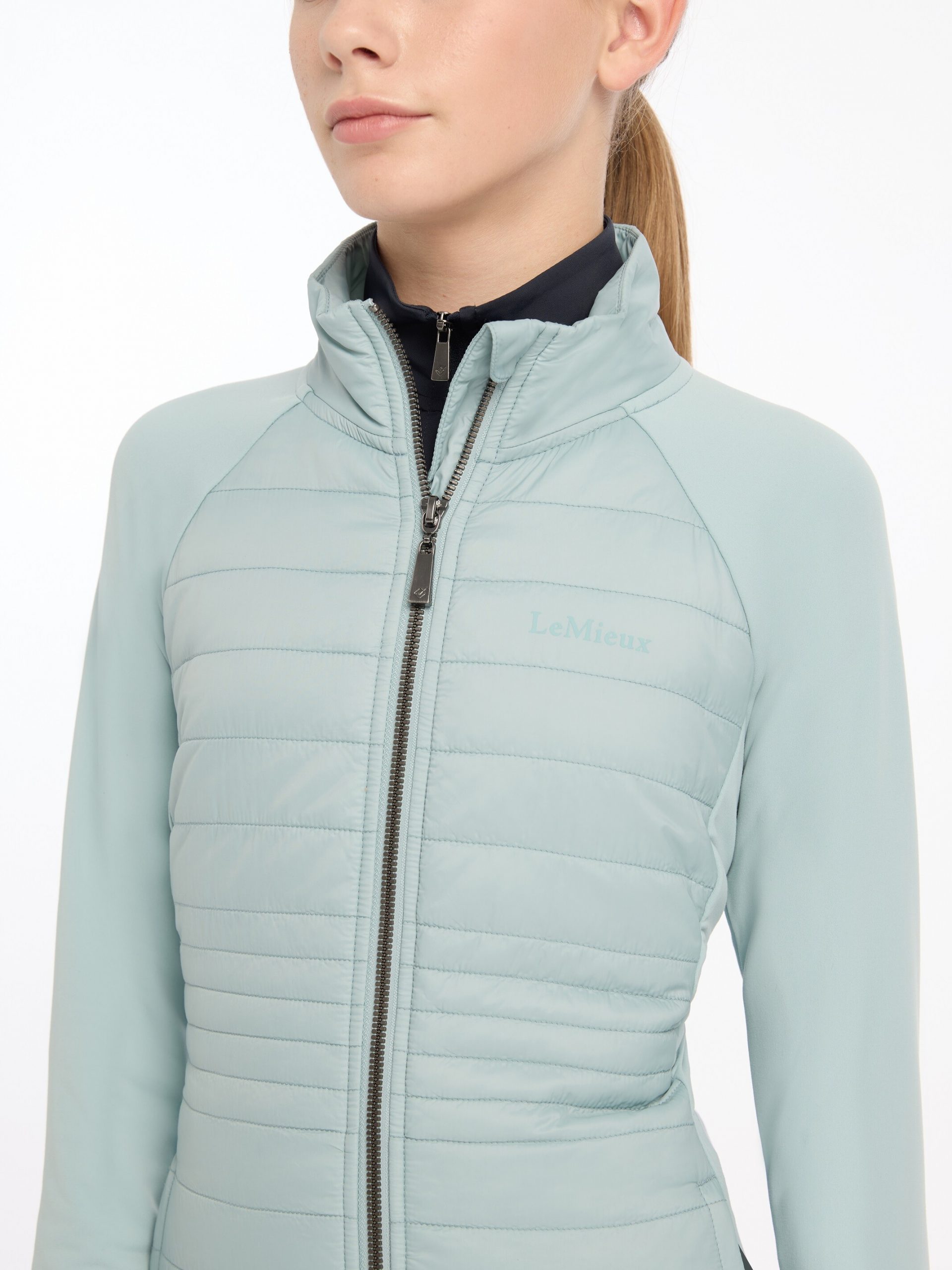 The discreet high-build LeMieux print logo on the chest and a metal badge LeMieux logo on the back of the neck indicate a mark of quality.